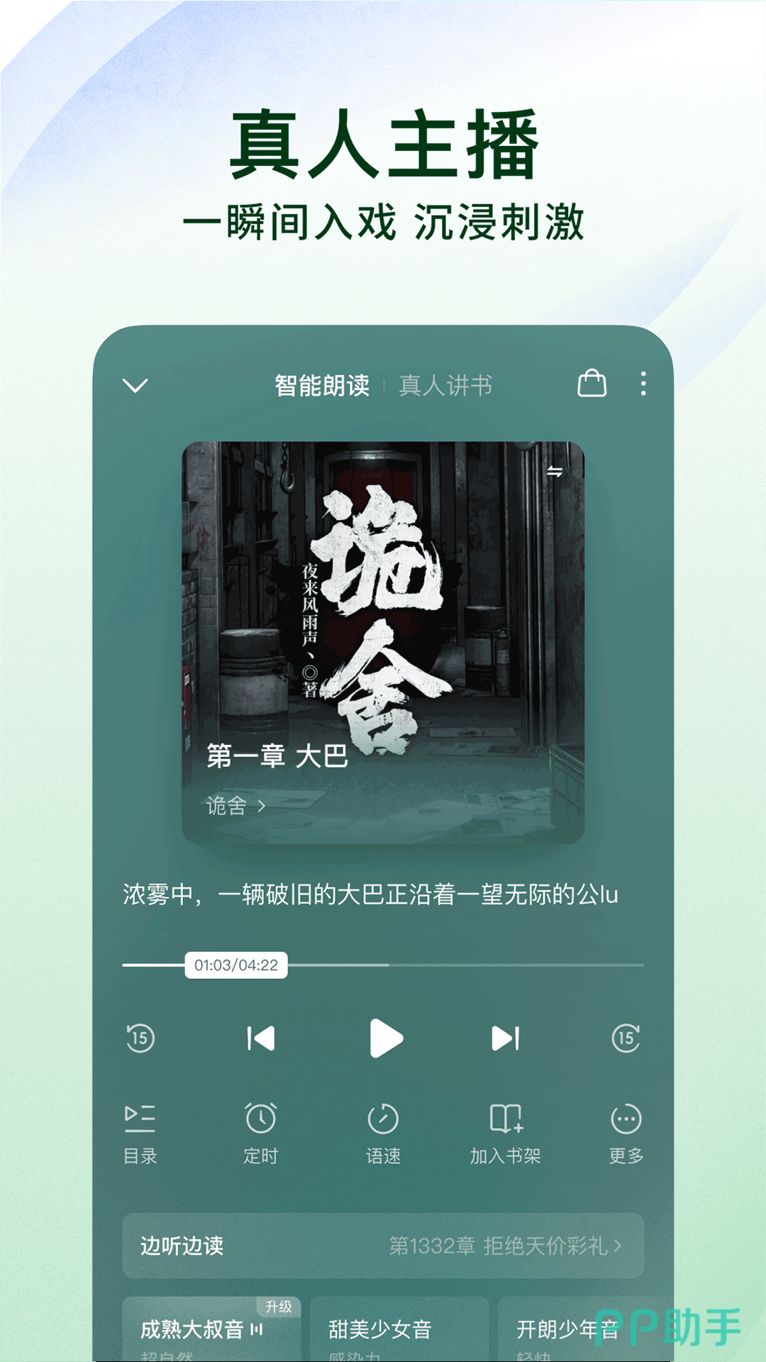 爱读掌阅在阅读软件里一直都很厉害,好多用户都爱用,不管是文学名著、热门小说,还是专业教材、学术书,又或者漫画、杂志,在爱读掌阅里都能找到,不管你想看啥,它都能满足。它提供了丰富的个性化设置选项,让你可以根据自己的喜好和阅读习惯,打造专属的阅读空间。爱读掌阅的听书模式也十分强大,它拥有多种音色可选,还有各具特色的方言音色,满足你不同的听觉喜好