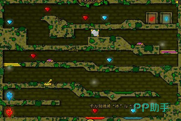 这款冰火人系列双人游戏场景设定在洞穴职中,具体玩法还是双人互动冒险交互性超强,各种颜色的钻石和特殊的机关增添耐玩性,操作轻松可实现双段跳躲避障碍,洞穴的背景跟基础的冰火人造型交相呼应,通关流程超快能让两个玩家快速冒险,机动性也很强可让玩家灵活避开所有的障碍物。