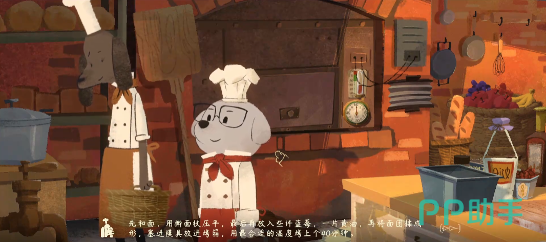 这时会接触到1个腊肠狗的店员,需要和他对话,通过与他交流,就能得知具体蓝莓制作的方法,这样就能获得蓝莓面包制作的详细步骤,也知道了烤箱所需的温度以及时间,之后就是按照步骤操作。