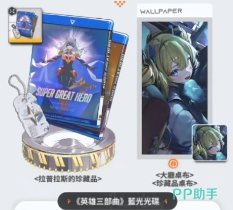 英雄三部曲蓝光光碟是给拉普拉斯用的,它的稀有度为SSR,作为一件珍贵的收藏品,它所对应的武器类型是发射器,能够在战斗中释放出强大的能量,对敌人造成打击,它的介绍是:坚定信任与勇气可成守护世界的英雄,如碟中超级大英雄。鼓励着玩家们在游戏中也要秉持着坚定的信任和无畏的勇气。