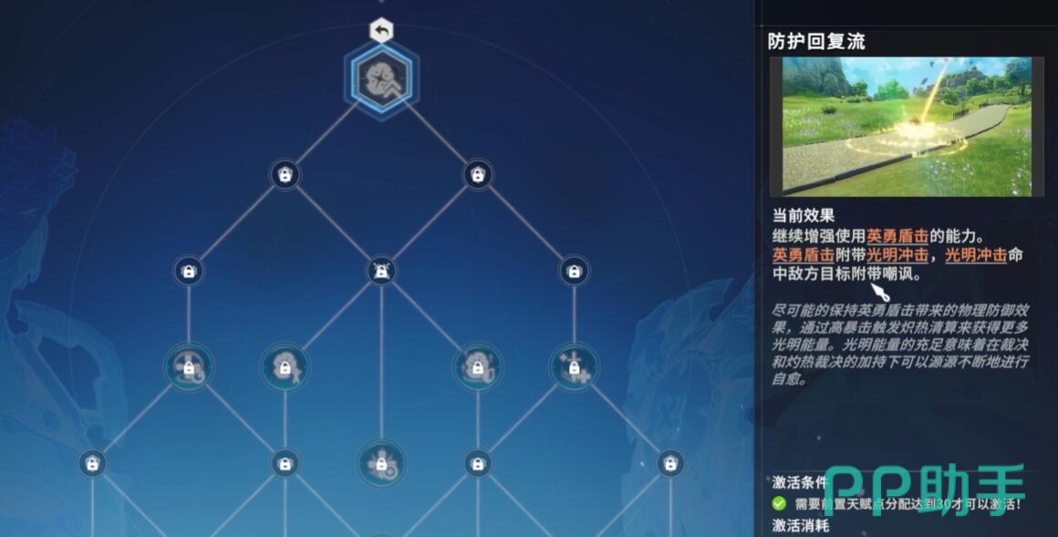 天赋树优先点出格挡反击(格挡后反击伤害提升20%)、圣盾庇佑(无敌冷却缩短3秒)、裁决升华(回血比例提升至25%)。战斗中需维持【光明圣盾】层数(上限5层,每层提升2%全抗),通过盾击与投掷盾牌快速叠层。光明能量(每秒回复1点)优先用于圣光守卫开启8秒高额免伤,剩余能量可释放清算触发暴击格挡增益。