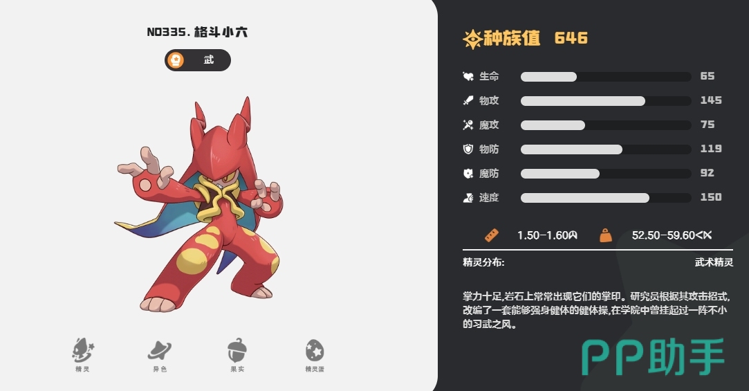 先来说说格斗小六,这只精灵可谓是天赋异禀,它的核心技能之一便是复仇阵,这个技能堪称是它的反击利器,当格斗小六受到攻击时,复仇阵便会被触发,此时它的伤害会翻倍,这一神奇的特性使得它在面对高输出敌人时,能够巧妙地实现反杀,而另一个核心技能炎爆拳,则是它的范围性高伤技能,作为火系技能,还能够对草系与冰系目标进行有效的克制。