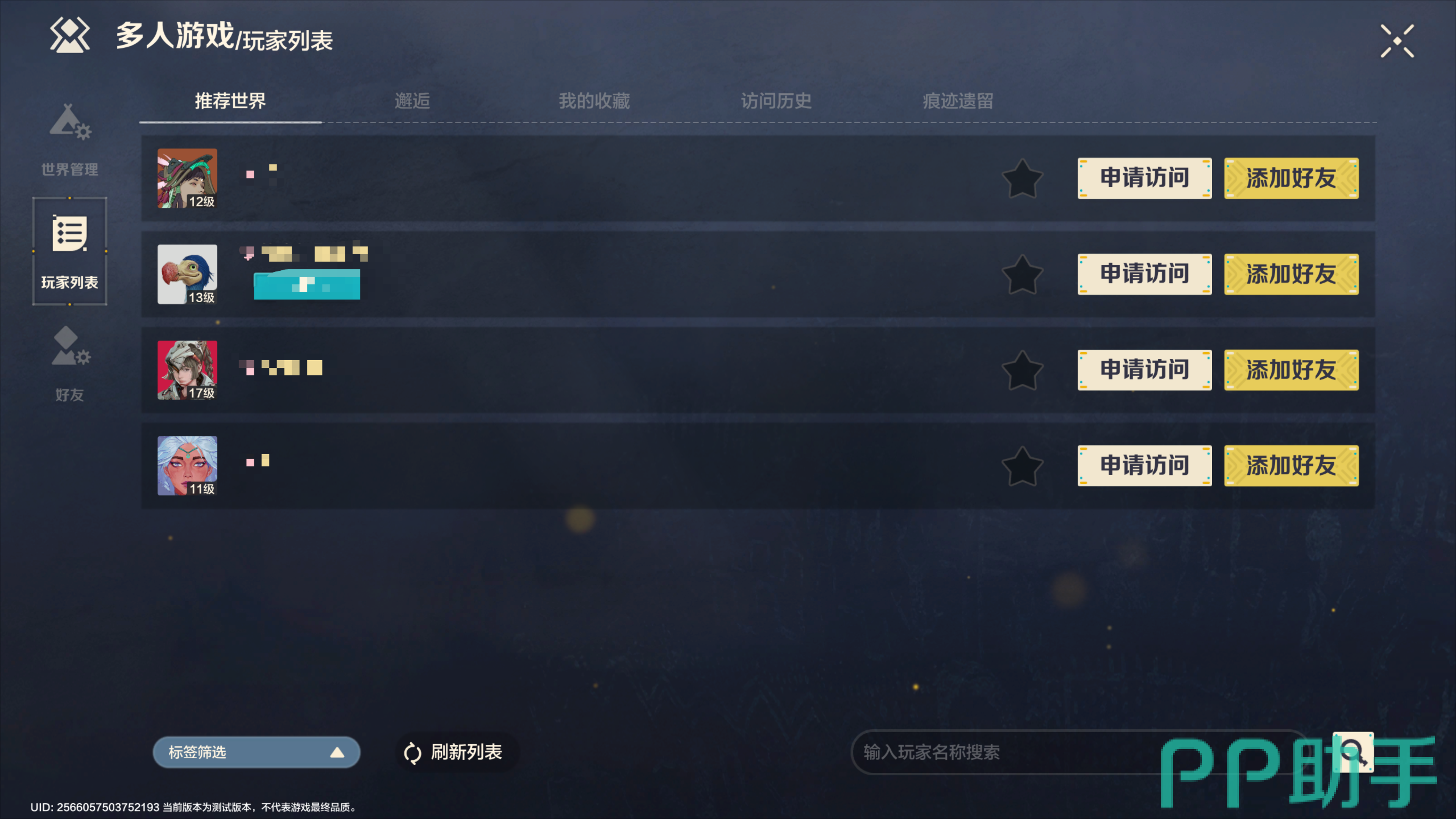 荒野起源中想要和朋友联机一起玩的话,玩家要有对方的好友才行,玩家首先需要先把朋友的荒野起源账号给添加为好友才行,添加好友时只要把朋友账号的uid复制到搜索栏上,点击搜索,找到好友的账号后直接添加就可以了。
