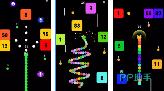 在游戏里,玩家要控制一条由一个个小球连接而成的贪吃蛇,在特定的场景中活动。贪吃蛇的主要任务是不断吃下场景里的球体,每吃一个,它的身体就会变长一些。不过,这游戏可没那么单调,还融入了打方块的玩法,让游戏体验变得更有意思。游戏地图上会随机冒出带有数字的方块障碍,要是贪吃蛇碰到这些方块,方块数字会变小,蛇身也会缩短。这既考验操作能力,又得讲究策略,可别因贪吃而吃亏。
