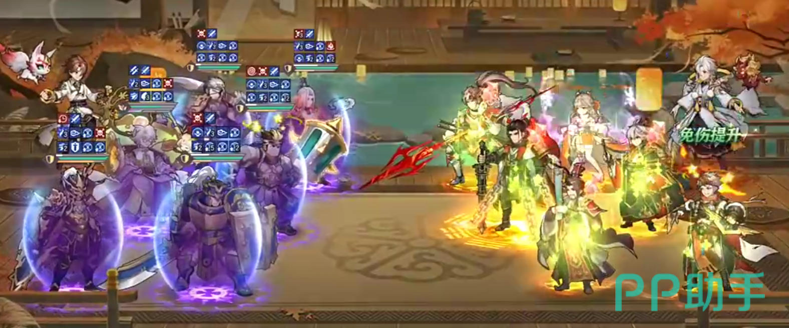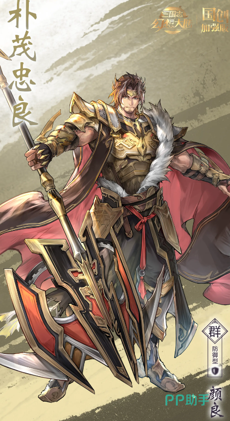 他的“玄戈裂渊”会对敌方的前排形成200%伤害,附加上“千钧”一回合,并在随后对全体敌人造成120%防御力的真伤,中“千钧”者会在受到颜良攻击后,额外再遭受一次100%防御力的真伤,他的三星被动会在进入战斗后得到“攻势守势”和“不灭”,并在首次遭受致命伤时进行防止将血量回复到上限,“攻势守势”会让自身同时被视作防御将和攻击将,可额外触发攻击武将的相关羁绊和招式,“不灭”会提升60%抗破甲率,免疫反弹伤害和一次斩杀,触发后会被移除。