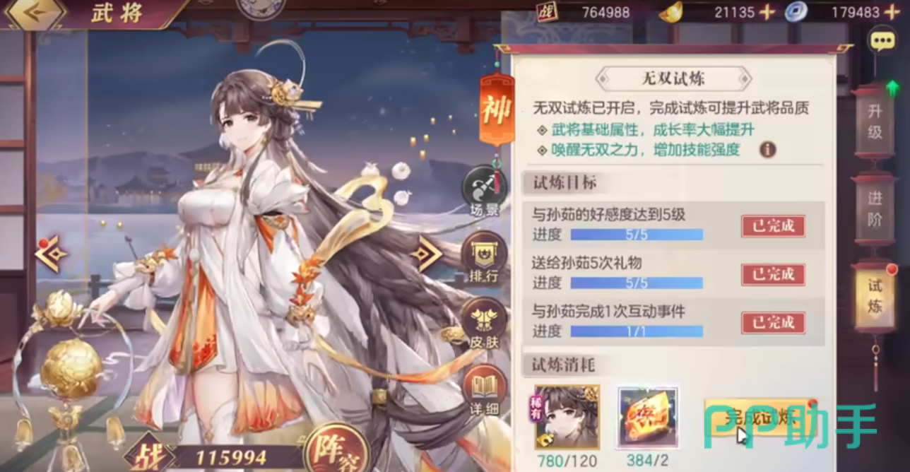 引渡的效果,在受到致命伤害后如果没被击退,就陷入不能转移的“魅惑”状态;后续的觉醒状态效果还会改变。她还有个羁绊,在同时上阵2个,或者更多数量的女性武将时,己方全体的治愈效果提高50%,她最终的抗破甲率,抗暴击率都增强50%。