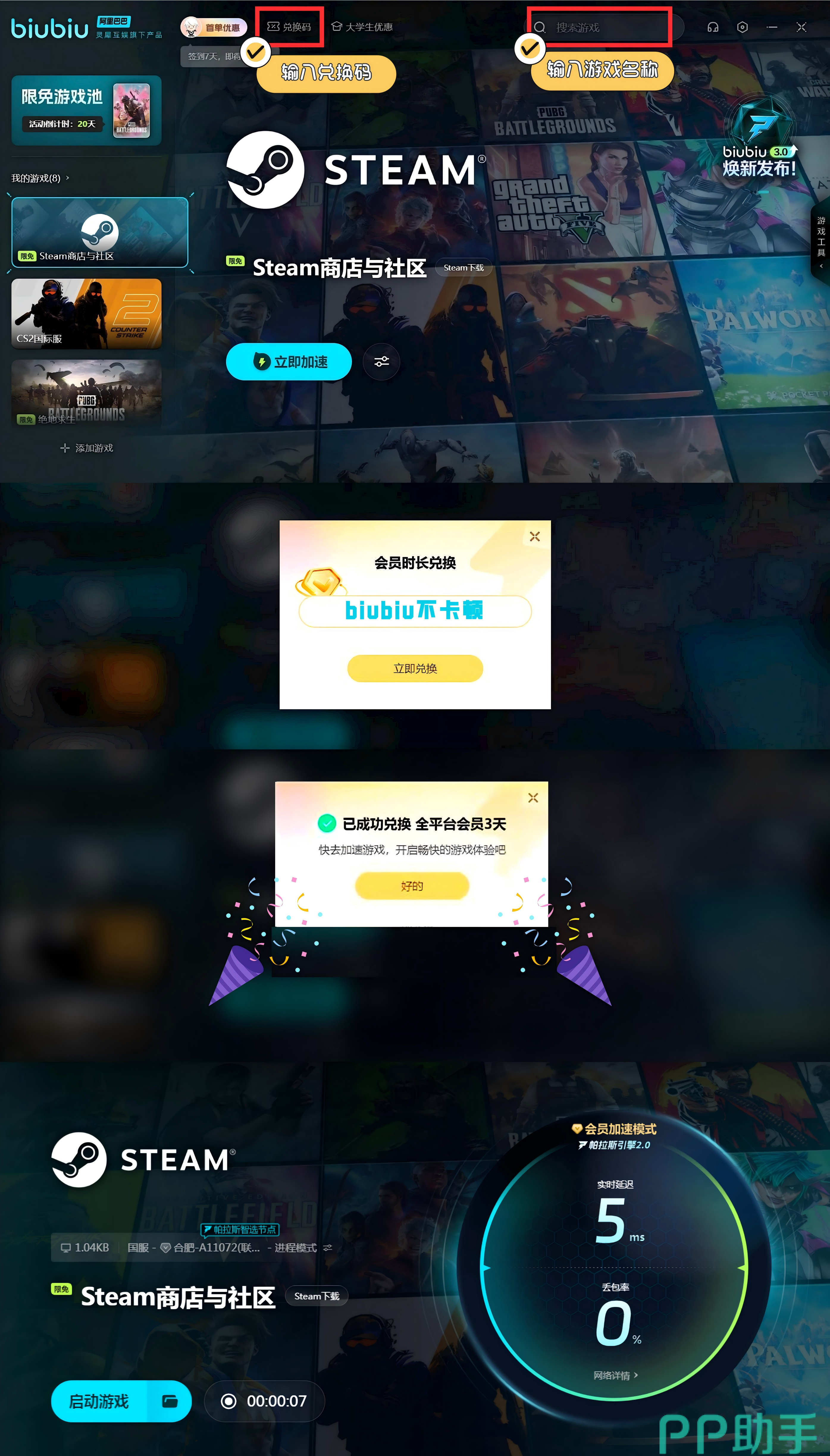 大家该得到的福利也不能错过的,注册账号去吧,新人立马可以获取免费的24小时福利时间用,然后继续使用【biubiu不卡顿】吧,这个会给新老用户送来额外的72小时服务时间的,一共加起来就能够给新人用上96小时服务时间了。