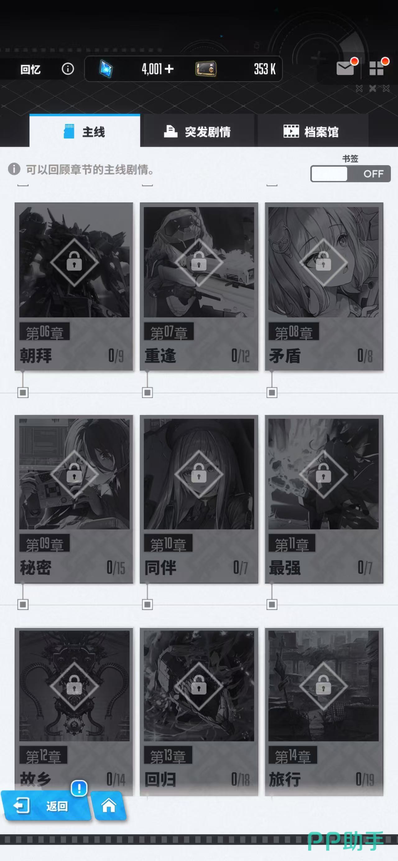 接着点击返回就可以查看下一个剧情,然后后面的被上锁了的剧情便是还未通关的剧情任务。要是想解锁的话就要将对应的任务章节做完才行,不过越后面的章节任务难度就会变得越高,只不过所出现的种类也会更丰富。