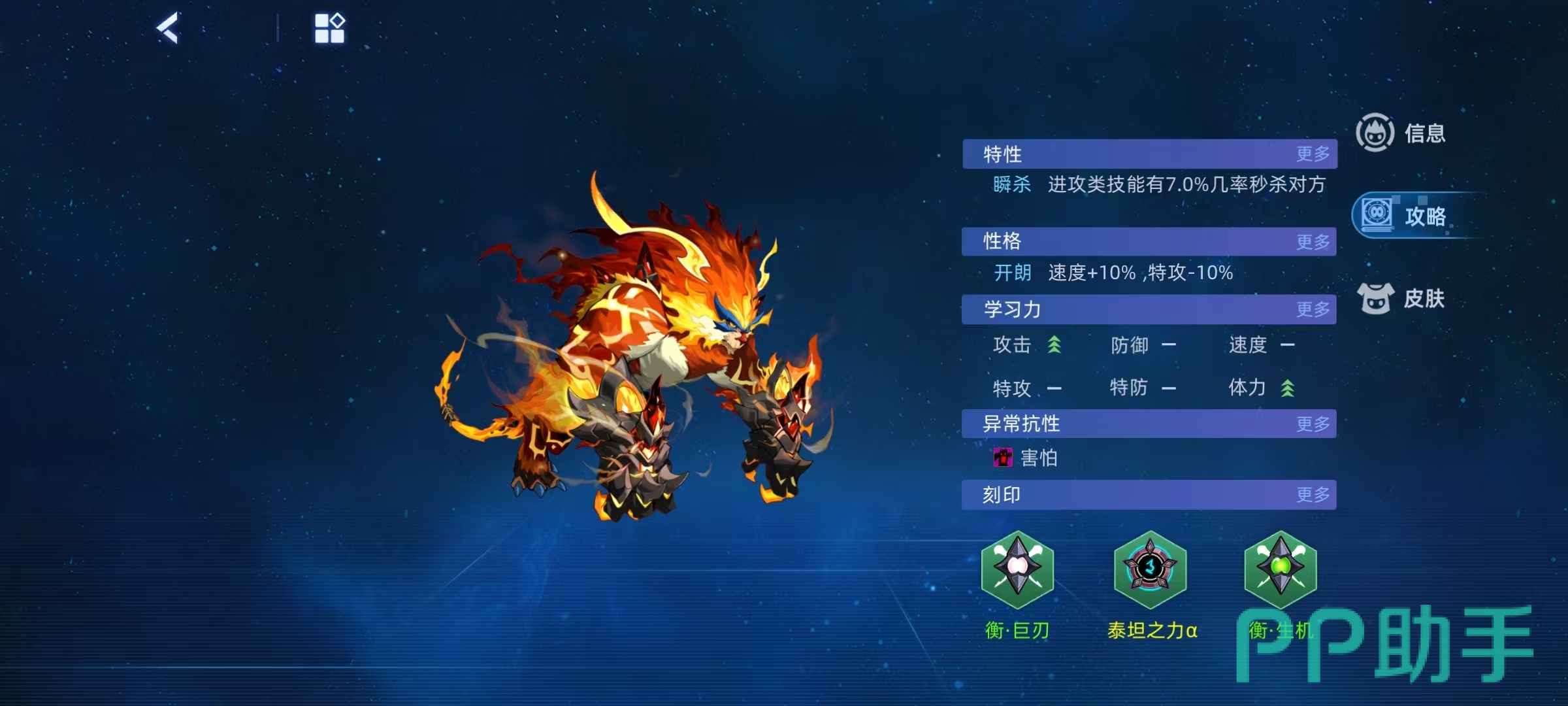 大家现在认为赛尔号巅峰之战星光魔焰猩猩怎么样,使用的时候小编比较建议大家选择瞬杀特性,这样进攻类技能有几率秒杀对方。性格开朗更加合适,增加速度减少特攻,学习力方面可以增加攻击和体力,这样就比较完美了。