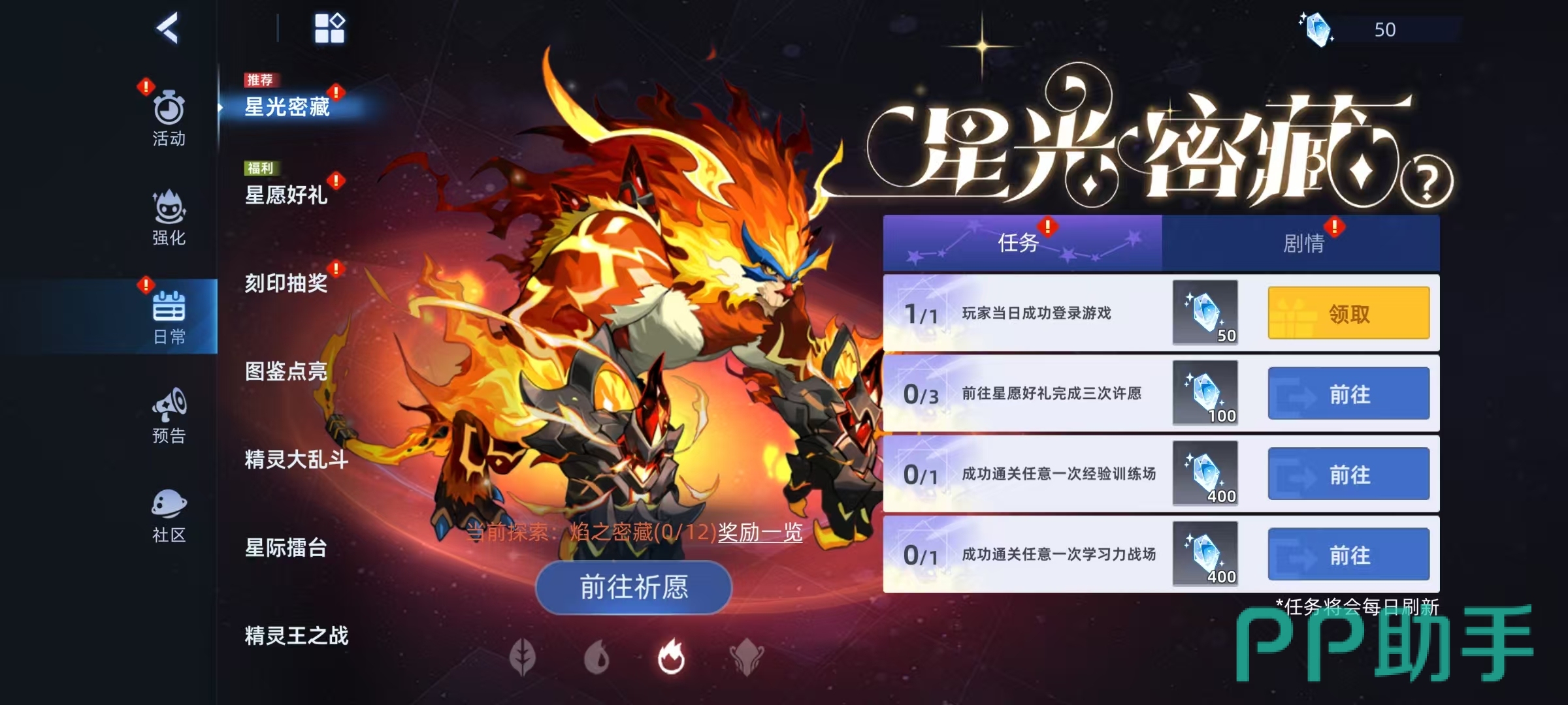 星光魔焰星星的属性为火,它的专属特性包括额外伤害、恢复和辅助等。选择搭配的技能推荐星光音速火拳、星光冥想、星光不灭之火、星光觉醒等。星光音速火拳属于物理攻击,能消除对手回合类效果,当消除成功时,使对手下回合先制减少3;有50%的概率造成伤害翻倍,如果对手处于能力下降状态时,那么触发概率翻倍。