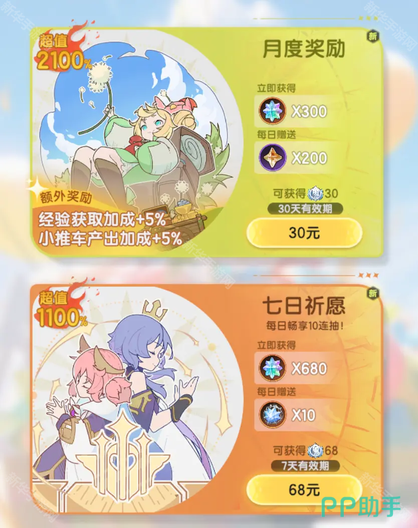 游戏中可以氪金的内容主要包含了新手礼包、周卡和月卡、每日特惠、巡礼之征、时装、每周礼包、启程好礼等。