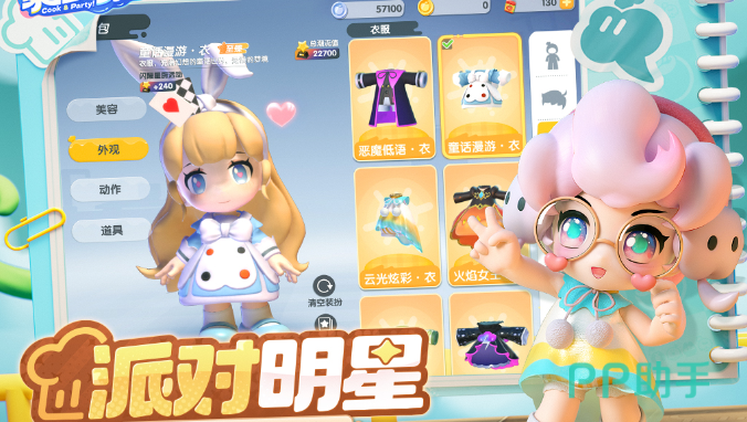 暴吵萌厨游戏中,构建了丰富多样的主题场景,玩家可乘坐软萌飞艇穿越时空漩涡,抵达如江南水乡、妖怪客栈、云上国度等充满想象力的料理王国场景,玩家能轻松邀请好友组队,一同挑战大乱斗,在紧张刺激的对战中,团队成员需要明确分工,有人负责切菜有人专注烹饪,有人及时上菜,通过默契配合完成一道道美食订单,玩家们还可以在活动中各显神通,相互交流烹饪心得。