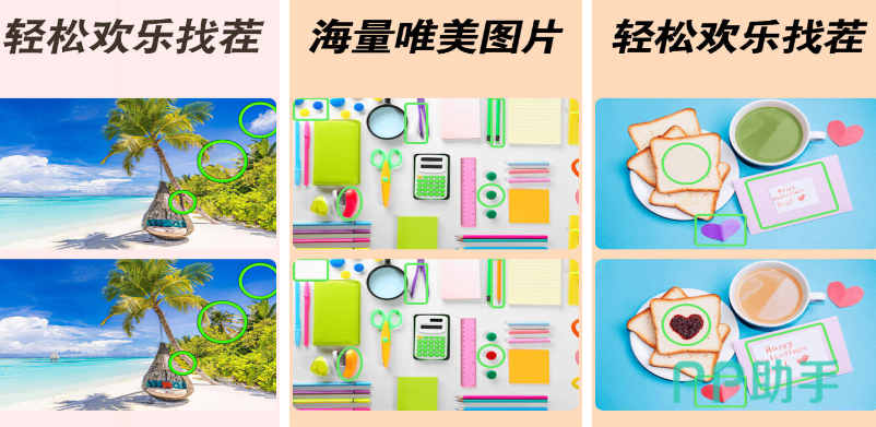 找不同!游戏中,图片主题丰富多样,为玩家呈现多元视觉世界,自然景观主题下,玩家可感受静谧森林中树木姿态、光影分布的微妙差异,或是壮阔海景里海浪形状、天空云朵的细微不同,生活场景主题中,热闹集市里摊位商品的增减、街道上行人的动作神态变化等一一展现,这些精美的主题图片,让玩家在挑战之余沉浸于不同风格的视觉盛宴。