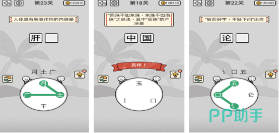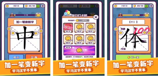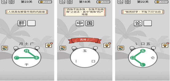 丰富多样化的关卡内容,每个关卡中所呈现出来的谜题是完全不同的,此游戏在创作时也融入着寓教娱乐的核心准则,能够让玩家在体验游戏的同时感受到汉字的魅力。在每个关卡开始之后都会呈现出不同的谜题,比如加一笔变新字或者通过简单挪动的方式呈现出与众不同的汉字。您在体验游戏的同时可以感受到趣味学习的无尽欢乐,还有很多成语的故事,也可任由玩家学习。
