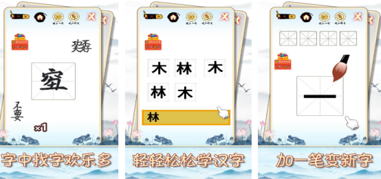 基于汉字题材上进行创作,这里所融入的烧脑谜题有很多,关卡的难度也是循序渐进的,玩家可通过关卡挑战的方式,解锁更多全新的汉字知识,玩家可以利用聪明的智慧,对于简约的汉字笔画以及结构进行重塑,可以拼写出正确的读音,这里还包括大量的闯关题目,每个关卡开始之后都会随机给出不同的题目。此外也有多样化的模式,任凭玩家选择,比如添加部首或者加一笔变新字等。