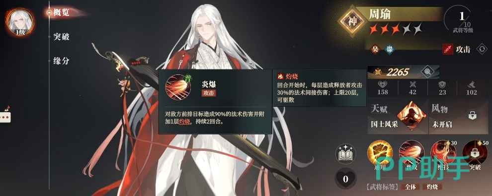 周瑜的灼烧体系就很不错,不仅仅是技能范围广,叠灼烧效率也很高,属于是吴国阵容中的主C位。