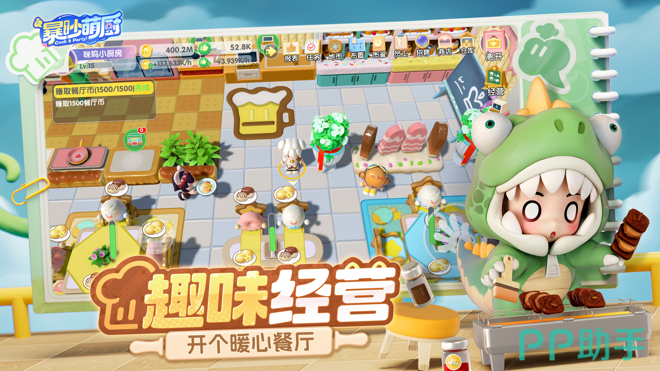 当拥有足够多的经验以及技术的时候,玩家们是可以选择开一家自己的餐厅,然后对餐厅进行改建,然后解锁更多的美食配方,这样就能成为当地的明星美食餐厅,而且还可以提高每日的收益,让餐厅变得更加美丽漂亮哦!
