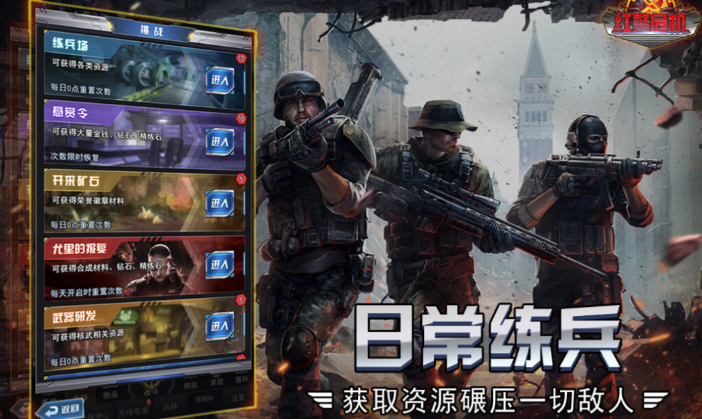 红警危机也是注重军事思维的RTS多人联机游戏,可进行练兵、开采矿石等基础的军事玩法,各种现代化军队单位加持让战局快速转换,操作灵活能快速根据战场情景施展战术,沙盘上数字化模拟的战场景象更有代入感,军队类别众多还可以建造不同的军事建筑,自动哨塔与防空炮等防御武器都能够自由放置。