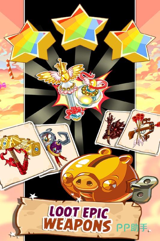 《愤怒的小鸟英雄传》在千篇一律的弹射机制上,游戏创新融入了精彩绝妙策略回合机制,而且又新意盎然的搭载了,各种笑料百出的奇趣剧情,同时全新塑造了一个明晰精美的猪猪岛,游戏中我们可以将小鸟进行进阶,另外还创造了一些造型令人眼界大开的战斗利器,每回合的战斗动作,都需要大家进行精心的规划。