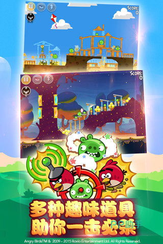 《愤怒的小鸟 嘉年华版》针对小鸟的类型,不仅进行了多彩多姿的设计,此外还为其都创造了一枝独秀的战斗项目,同时制作团队,还向大家推出了更加趣味无限的嘉年华篇,把各种主题场景,都进行了高调的五彩斑斓的设计,还创造了一系列惊为天人的关卡挑战,各种能够直接让绿皮猪毙命的道具,随心选用。