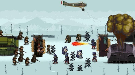 这款时间线设立在1914年的战争类游戏就具备战壕地图,各类一战武器以及载具也是齐上阵,很有代入感的像素战争画面也很刺激,玩家要操控士兵在战壕中对外发动攻击,战场中心战火纷飞且战壕地图设定精致,就连一些栅栏和沙袋掩体都塑造的很逼真,游戏操作也容易可快速让人感受到战争带来的极大震撼。