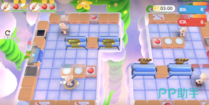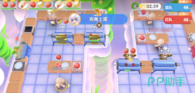 在云上挑战的双人排位中,出生地点还有分工都会影响到整个流程的效率。组队的规则就建议主动拉人者是队长,被拉者就是2号位。1号位的出生点是草莓、香蕉区域,2号位的出生点靠近山楂石材区域。利用出生点的差异,就可以有效完成食材的预处理。例如1号位置主要是控制上菜,2号位置主要是注重于投掷,通过左右分控的方法就能有效缩短食材的流传路径。