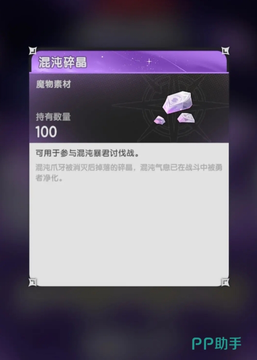 简单来说,混沌侵袭主要有两个阶段组成,在第一阶段中,人们需要与刷在地图上的混沌魔物作战,拿到混沌碎晶。混沌碎晶是参与第二阶段玩法的重要道具,收集到100枚后,各位就能与其它也收集到足额混沌碎晶的玩家一同去挑战boss,首次挑战都可获得固定数额的混沌晶体,它能在家园里的神秘商人处兑换各种有用的道具。