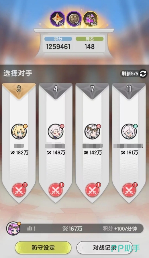 当各位解锁了竞技场的玩法后,就能在游戏里与其它的玩家进行PVP对战了。该玩法采用的是赛季制模式,每个赛季初都会清空上赛季的排名等一切信息,需要人们重新进行争夺。在体验时各位可从四名玩家中挑选自己的对手,不满意时还能利用刷新功能换一批对手进行挑选。