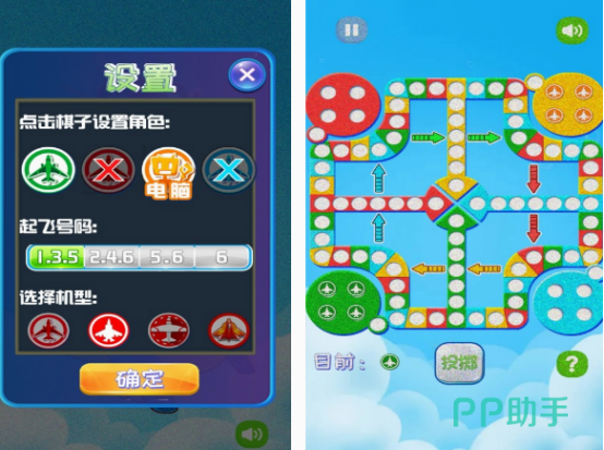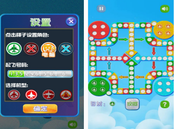 开启了这款能回忆童年玩飞行棋的游戏以后,可点击棋子设置角色,更有不同的飞机机型选择。极大程度上满足每个玩家,对飞机外形的需求,在棋盘上,依旧需要玩家利用投掷骰子的方式,来超越其他的玩家,获得最终的胜利。里面所涵盖的点子数量,与玩家的运气也有着一定的关系,搭配上清新的音乐,带来轻松的游戏体验。