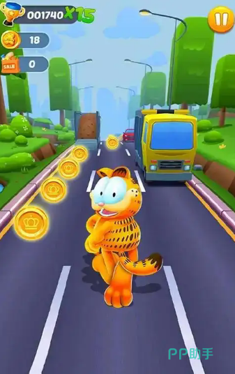 想象一下加菲猫穿上跑酷装备,踏上一场风驰电掣的冒险,这就是这款游戏的魅力所在。它就像是一场充满欢笑和刺激的追逐,让每一个玩家都跟着这只胖嘟嘟的猫一起心跳加速。玩家只需要操控加菲猫在无尽的赛道上奔跑,躲避那些突然冒出来的障碍物,比如滑稽的捕鼠夹、调皮的狗尾巴,还有那些让人措手不及的坑洞。每一次成功躲避,都像是完成了一次完美的舞蹈,让人忍不住哈哈大笑。