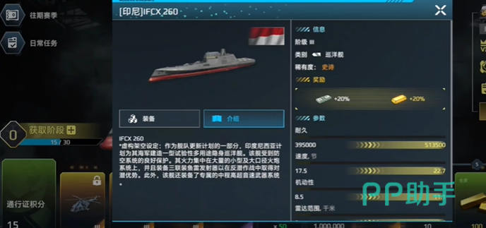 现代战舰的舰船各具特色,今天小编解密一下游戏现代战舰印尼巡洋舰的特点。印尼巡洋舰历史原型蓝本设计的特色舰船。它航速较慢,转向笨重,机动性数值如 IFCX260 只有 8.5,很难完成近距离的灵活攻击战,不适合在复杂海域孤军深入,容易成为潜艇或驱逐舰的突袭目标15。