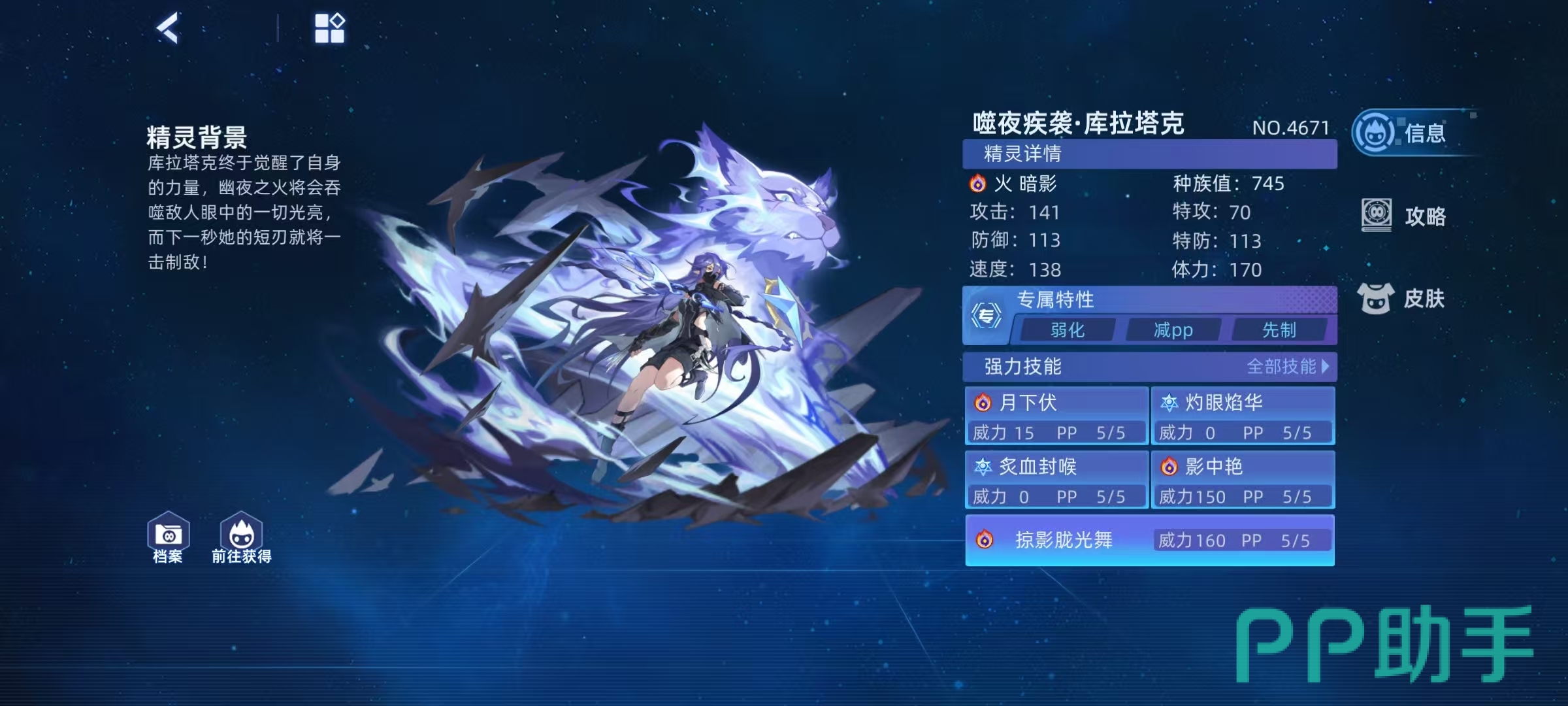 在库拉塔克觉醒了自身的力量后,利用幽夜之火吞噬敌人眼中的一切光亮,然后利用自身的短刃来将敌人消灭掉,这就是噬夜疾袭库拉塔克的强势之处,今天小编来详细分析一下赛尔号巅峰之战噬夜疾袭库拉塔克怎么玩。这是一个火和暗影属性的精灵,种族值方面比较高,特性和技能都很强势,具体情况一起看吧。