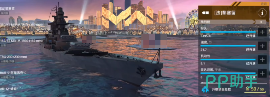 作为法系战列舰的代表,黎塞留以卓越的武器布局和强大的战斗能力著称。其搭载的两组四门火箭炮在反潜战中表现出色,引擎传动性能优异,防空能力强大。尽管血量稍显薄弱,但整体强度依然突出。