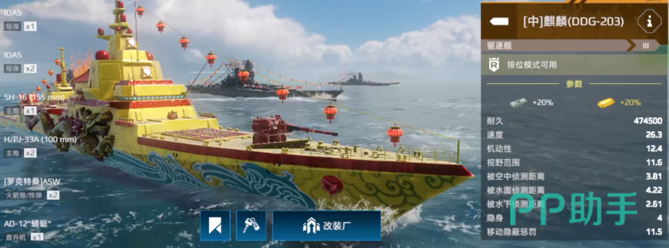 拥有5个导弹槽位,航行速度快、机动灵活,可以在海战中快速调整自身的位置,是战场上的多面手。