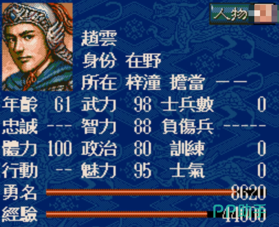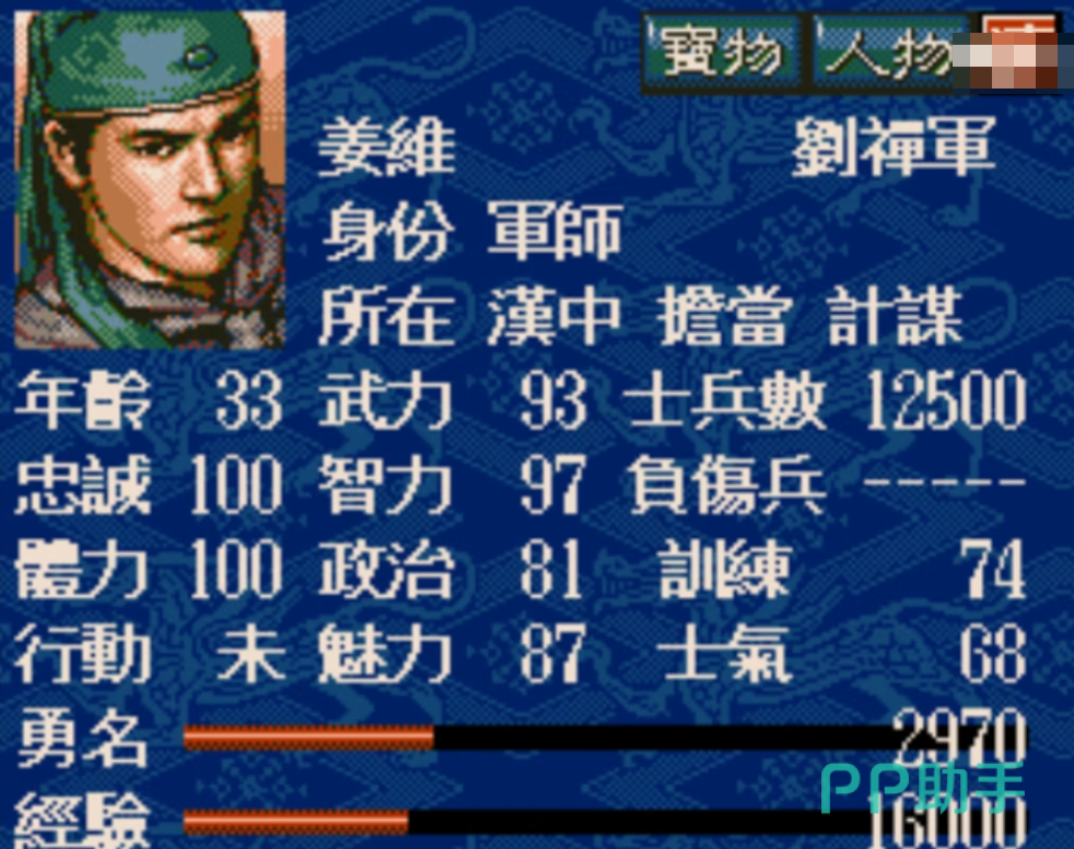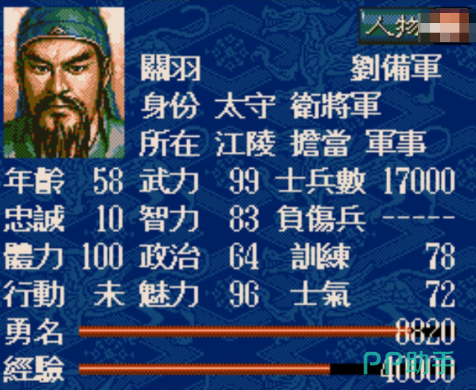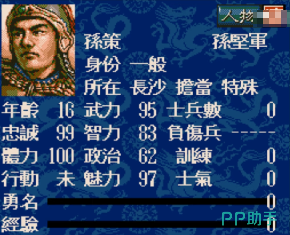 孙策是江东基业的奠基人,游戏中统率95、武力96,是少数能与关羽、张辽并驾齐驱的将领。他的智力与政治略逊一筹,但依然在60以上,不算拖后腿。孙策最大的优势是成长性与稳定性,早期便可迅速开疆拓土,中期则可稳固江东,在没有周瑜时也能独当一面。