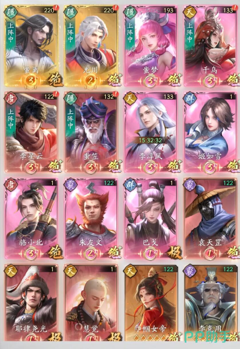阵容搭配上,新手推荐均衡推图流:李星云(主C)+姬如雪(治疗)+袁天罡(副C)+蚩尤(前排)+候卿(控制)。这套阵容激活羁绊,提升全队攻击力20%,兼顾输出和续航。PVP方面可以调整成爆发速杀流,比如女帝+张子凡+慧明+焊魃,女帝搭配专属武器太古遗音琴能无视30%防御,快速秒杀敌方脆皮。