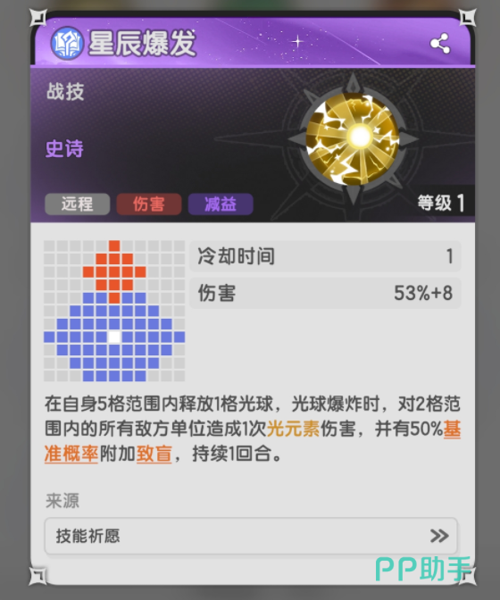 玩家也可以选择用智盲流,直接让对方进入到致盲状态,这样就无法在游戏里展开攻击,非常适合在pvp或者是多人对战的时候,利用光能灼射直接致盲对方,也可以在这个基础上使用星辰爆发,带来高额的伤害。