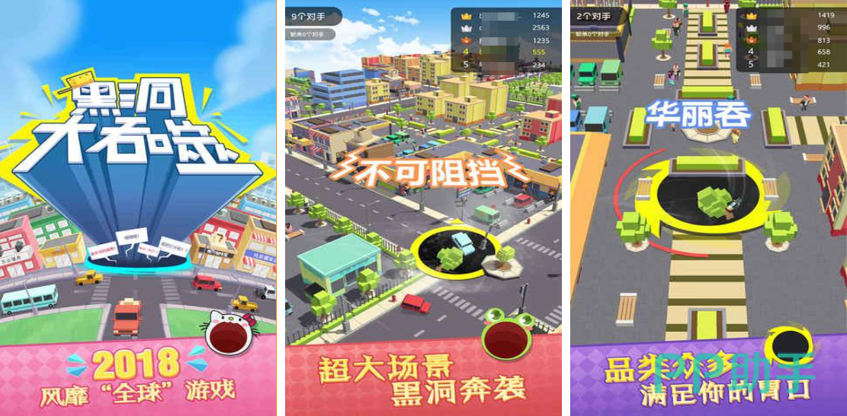 本作也是红极一时的一款3D立体效果吞噬竞技游戏,能多人同台比拼获得极高的竞技快感,利用吞噬道具的方式越来越强设定完美,你也可以吃掉其他玩家的黑洞让自己汲取养分,地图上最大的黑洞还会拥有小皇冠的标注,极高代入感和解压的性质令玩家回味无穷,这款以黑洞为主题的吞噬竞技作品场景还很多样。