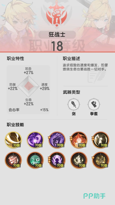 战士作为初始职业之一,以其近战物理输出和防御能力备受玩家青睐,一转可进阶为斗士或骑士,后续还有更多转职方向,每个阶段都有独特的技能体系与玩法,战士一转可进阶为斗士或骑士,后续还能进行二转、三转,解锁更多职业形态与技能体系,战士的技能体系丰富多样,涵盖主动与被动技能。初始战士拥有如超重击这类单体高爆发技能,对大体型敌人效果显著,被动技能方面,洞察心眼增加会心率,在战士成长的前中后期都至关重要,反击之剑能在面对近战怪且处于2格距离内时触发反击,悲鸣之刃提供吸血效果,增强生存能力,金汤铁壁则为团队提供群体增益防御BUFF。