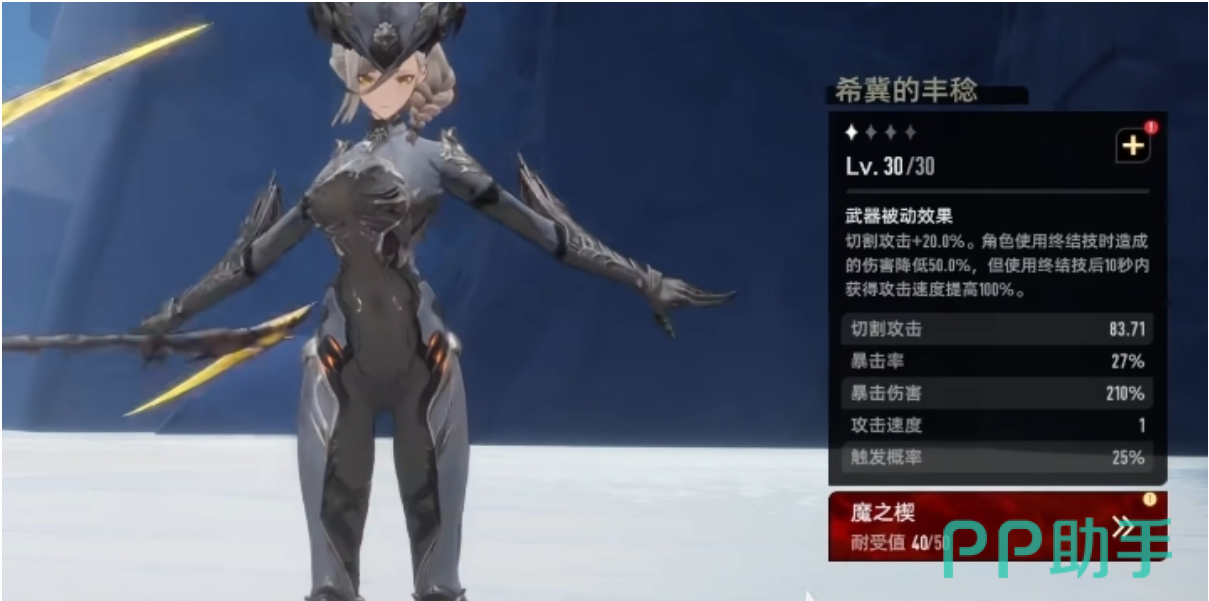 火属性的角色使用炽枪的花宴在成功闪避后能够增强技能伤害和远程类武器的伤害。希冀的丰稔它的终结技能有着而提高自身攻速,降低敌方对自己伤害的效果。