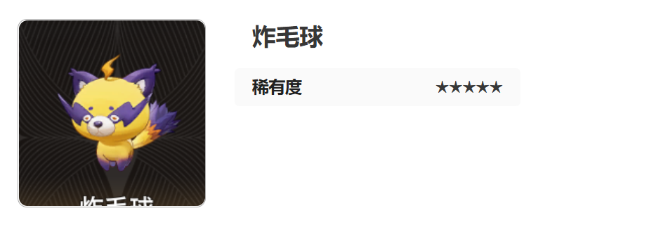 炸毛球的稀有程度也使五颗星,它的主动技能主要是用来增强对否的防御能力,炸毛球能够给附加的队友附加上32%的超限护盾,而且护盾若是3次被对手给击破,还能获得8%最大护盾值的保护盾。被动技能就是角色的雷属性攻击能够增加 16%。