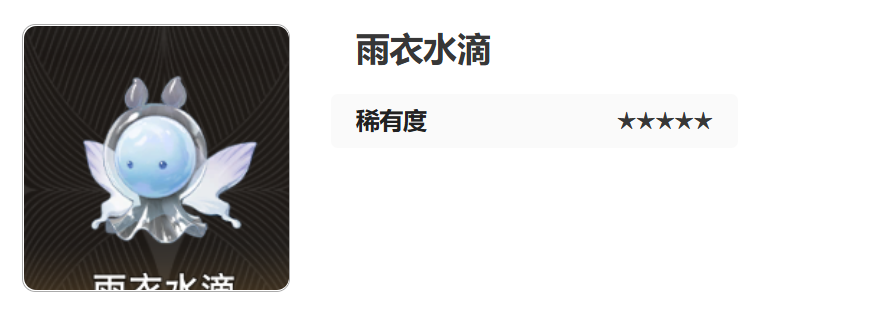 稀有程度五颗星的雨衣水滴是一种水属性的魔灵,它的主动技能会根据主人召唤出来的召唤物数量来提高队友的伤害效果。被动技能增强水属性的攻击。