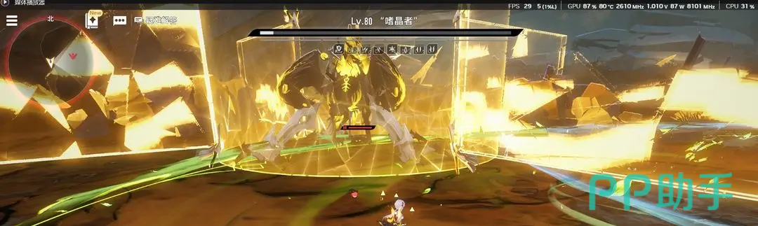 之后嗜晶者会不断的重复前面的动作进行攻击,而我们要做的就是慢慢的磨,直到把它打成丝血,这时它就会进入到狂暴状态了,狂暴状态的boss周边会出现一个耀眼的光幕,光幕还会在嗜晶者身边不停的转圈,嗜晶者则会在光幕出现以后喷射出晶体来攻击我们,面对狂暴状态下的boss,我们要把晶体攻击给躲避掉,还需要顺着光幕移动,等光幕没了以后来一次近距离的输出,boss就被打死了。