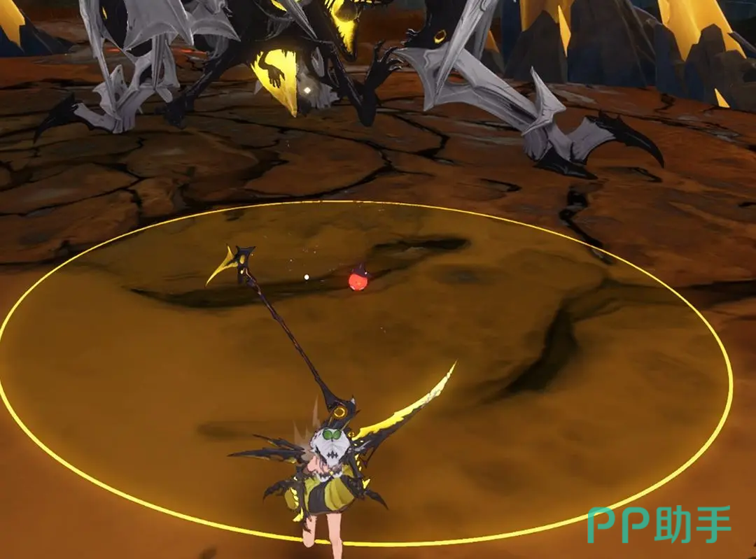 嗜晶者在没有进入到狂暴状态之前的打法还是相对比较容易的,在进入到战斗以后,会看到地面上出现一个黄色的巨大圆圈,一旦出现这个圆圈就说明它要使用技能开始攻击了,躲避这个攻击技能也非常的简单,我们直接跳到圆圈的外面就行了。