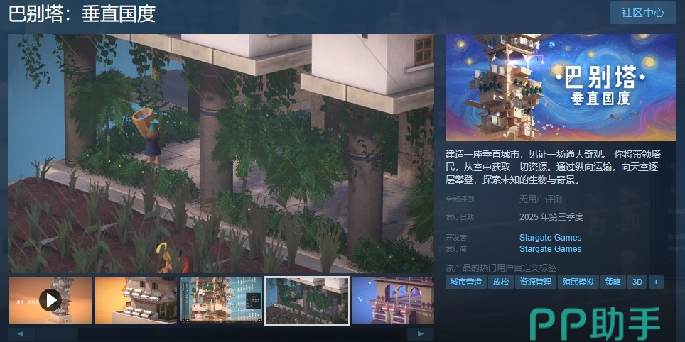 这款游戏在steam上的正式名称就是巴别塔垂直国度,英文名为Stario: Haven Tower,目前已在steam平台上线,并提供了DEMO试玩版本,预计将在2025年第三季度以抢先体验形式正式推出。