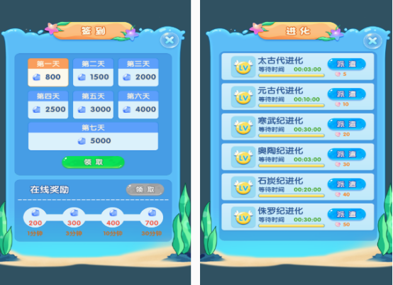 这款以探索海底世界为主的游戏,以海底生物进化合成为主要的内容,操作方式比较简单,既能帮助玩家在玩的过程中,仿佛置身于美丽的海底世界,看到很多海底的生物,也能在玩的时候,享受解压又轻松的游戏氛围。利用合成的海底生物不断进化升级,更能打败里面的敌人。每天还能通过完成趣味性任务的方式,来获得奖励。