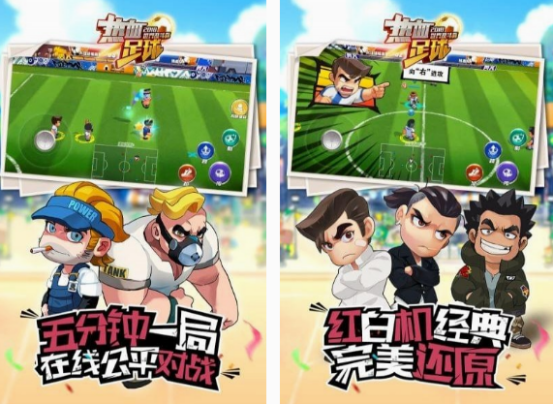 这款根据红白机经典游戏,为大家所推出的热血足球手游,不仅是正版授权的,可帮助大家享受曾经在红白机上游戏的欢乐,更是只需要5分钟,就能展开公平竞技对战,轻松玩一局的。虽然并没有融入现实生活中的足球运动迷,而是采用卡通的人物进行设计。但这款精彩的足球比赛游戏,依旧能让玩家控制6个精英组成的队伍,与其他的队伍进行较量,以休闲足球为主题。