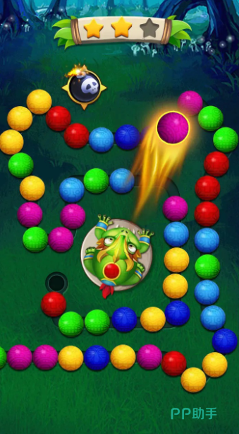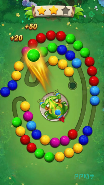 除了消除之外,在道路的首端也会不断的推出全新的珠子,玩家需要做的就是,不断利用青蛙吐出的珠子,快速的消除这些圆球,否则随着推荐,这些圆球都会被推入到终点的洞中,除了借助这些珠子进行消除之外,游戏里还会有几种不同的道具,可以利用爆破珠,倒退珠,快速消除场上的珠子,也可以产生大范围的爆破,缩短这些珠子的距离。