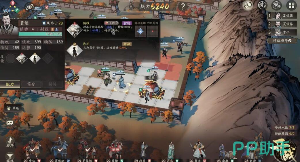 贾诩会在第五回合左右出现,这是最危险的时候。他一出来就会放范围技能,所以要把队伍分散开。夏侯惇可以转职成战车去吸引贾诩火力,战车形态的反击能力很强。夏侯渊继续远程输出,但要保持距离。典韦这时候应该已经撤到地图中间位置了,注意避开贾诩的技能范围。打败贾诩不是必须的,重点是让典韦安全到达撤离点。