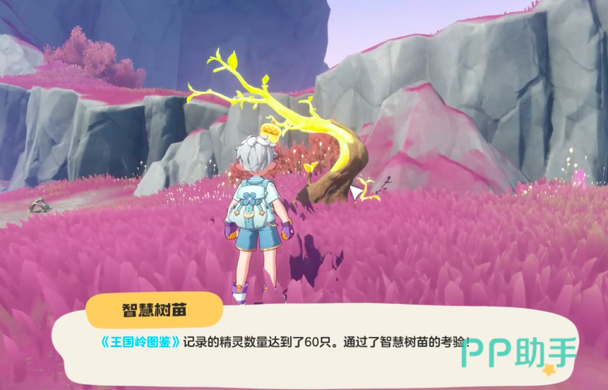 找到黄金智慧树苗之后,开启黄金智慧树苗,稍等片刻树苗开始成长,接着就能生长出精灵果实,这个就是寂灭骨龙的小果龙的蛋形状态。